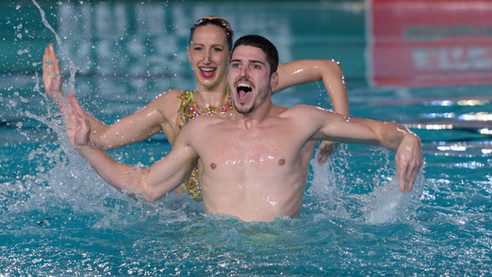 Continuano le soddisfazioni allo Stadio del Nuoto di Riccione, un sabato di syncro iniziato dalle prime ore della mattina con gli obbligatori dell' Benedetti Veronica nel Solo, poi il pomeriggio la coppia Claudia Laveglia – Francesca Pacifici e di nuovo Veronica Benedetti in coppia con Marta Falcioni, poi ancora nel Duo Mixed degli straordinari Cicchetti - Fanton (atleti Flaminio sc) che conquistano il terzo posto, infine sono entrati in acqua loro, sulle note di Beggin’ Giorgio Minisini e Lucrezia Ruggiero danzano a 91.8667 e si prendo l'oro oltre alla standing ovation del pubblico presente allo stadio.